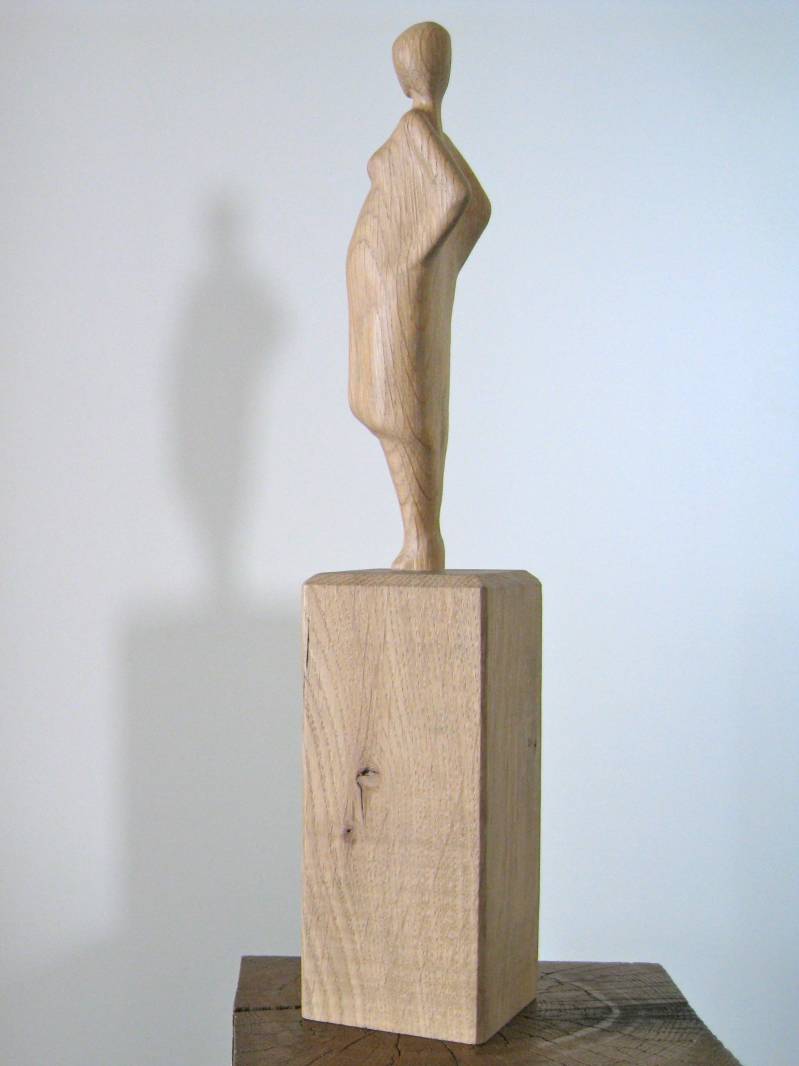 In 2009 begon hij ook in steen te werken. Vrij zachte steen die met een houtbeitel te bewerken was. Hiernaast mijn eerste werkstuk, waarvan alleen al het polijsten vele dagdelen in beslag nam. Links de voorkant, rechts de achterkant.